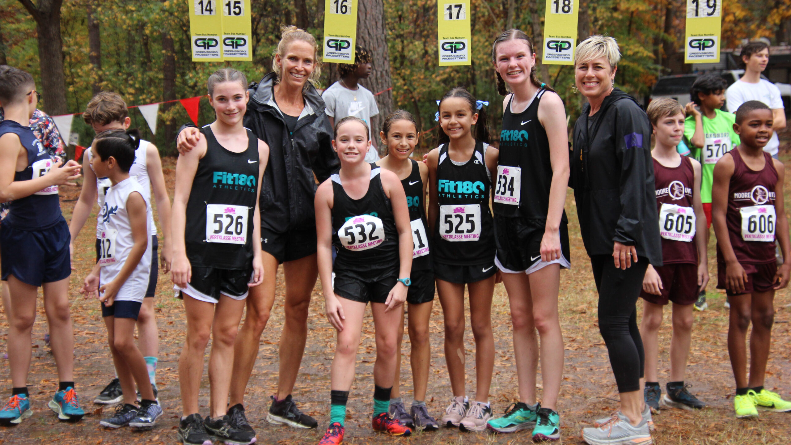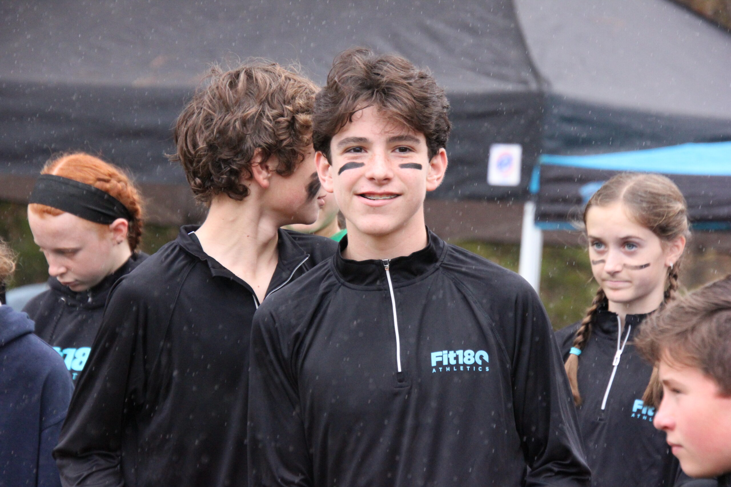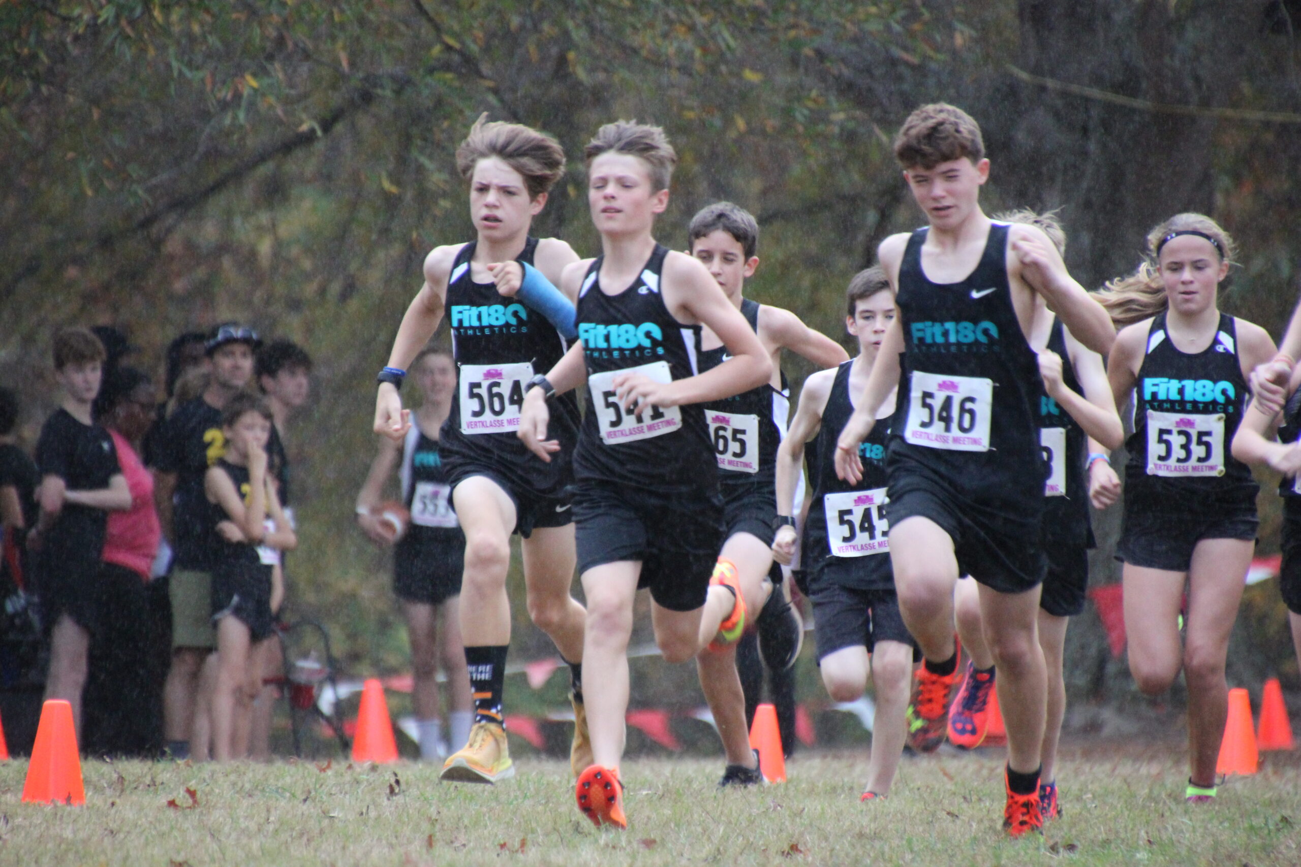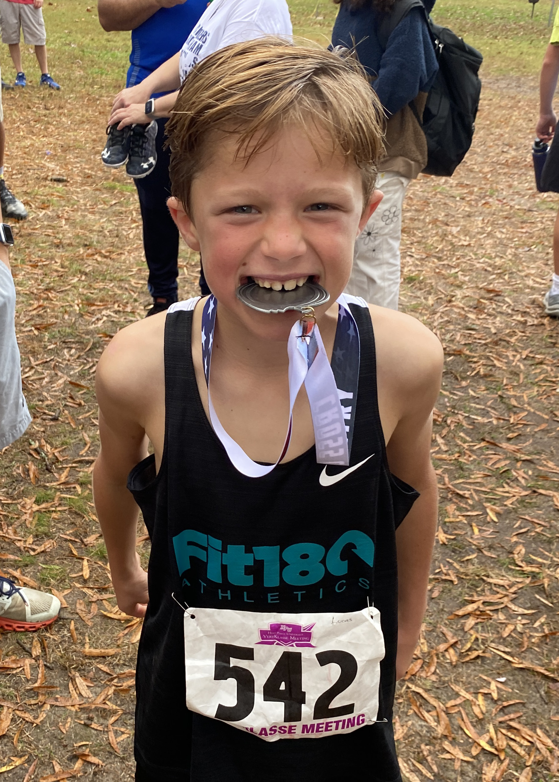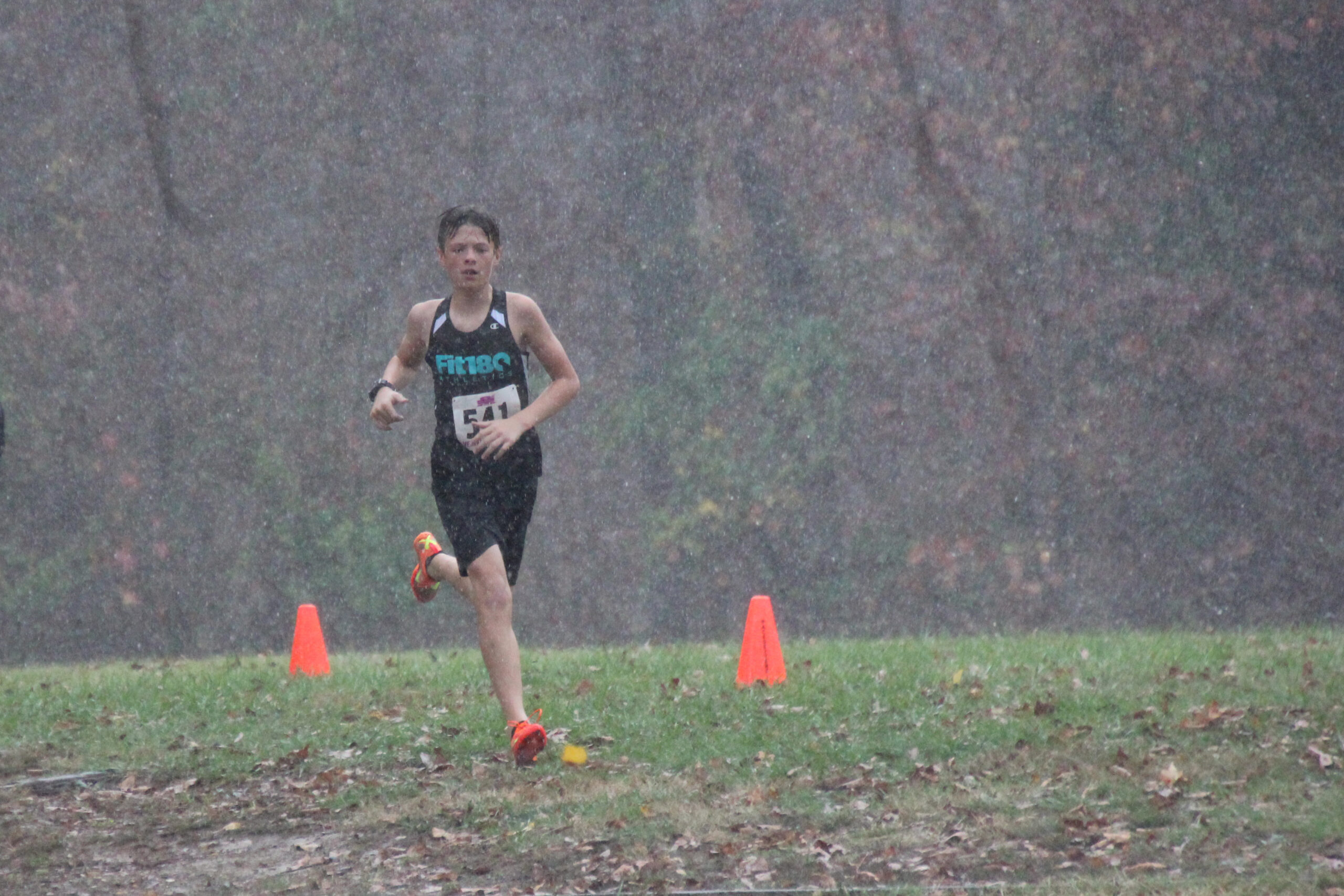 What a strong showing we had out there today!  Fit180 placed 18 of our runners in top ten medal winning spots!!   That was a true Cross Country course with plenty of hills, roots, and added bonus of mud and rain for our 11-12 year old boys and girls!  Missing shoes, pouring rain, lots of mud and tough working kids!  It was so fun for us to coach, support and cheer on this competitive group of runners!