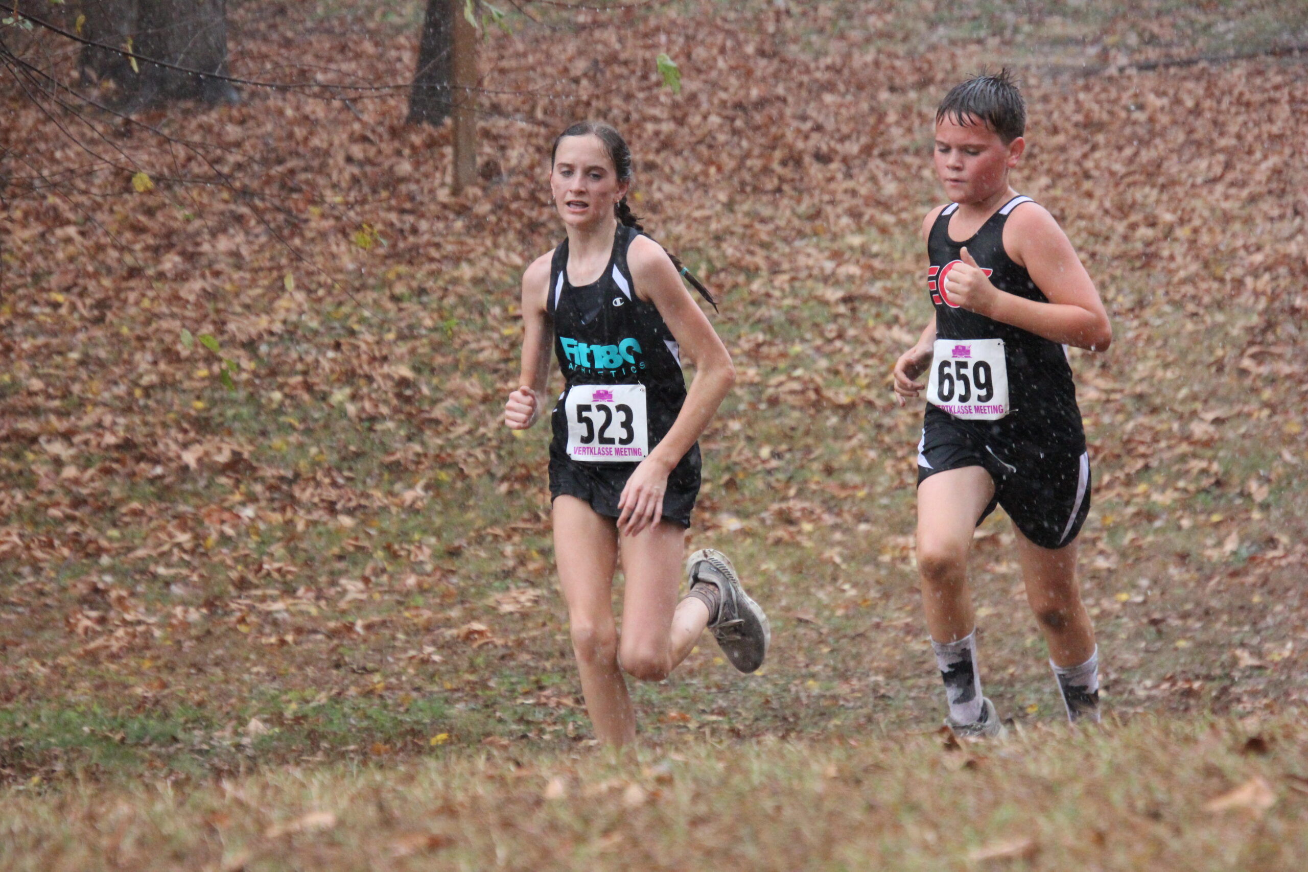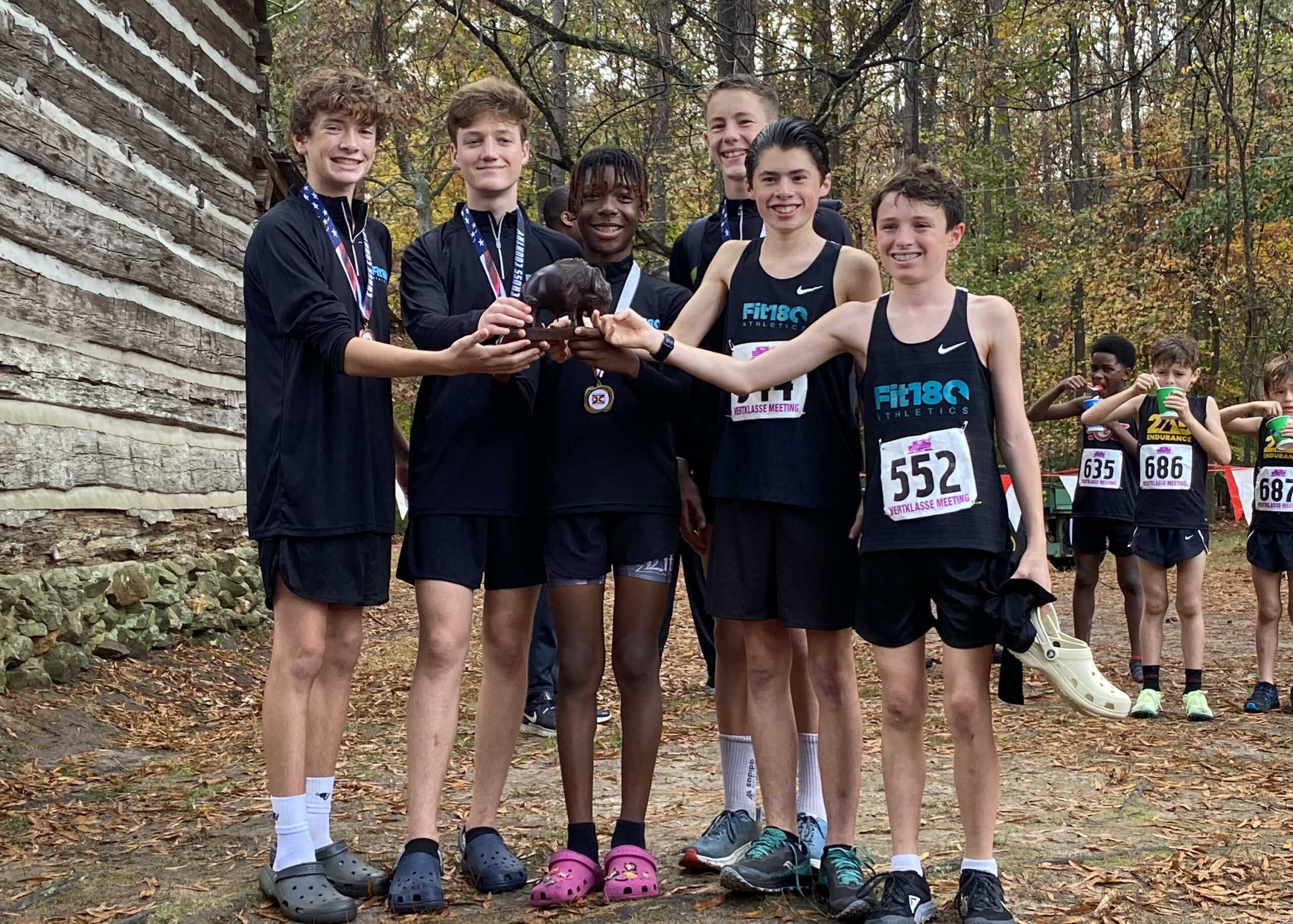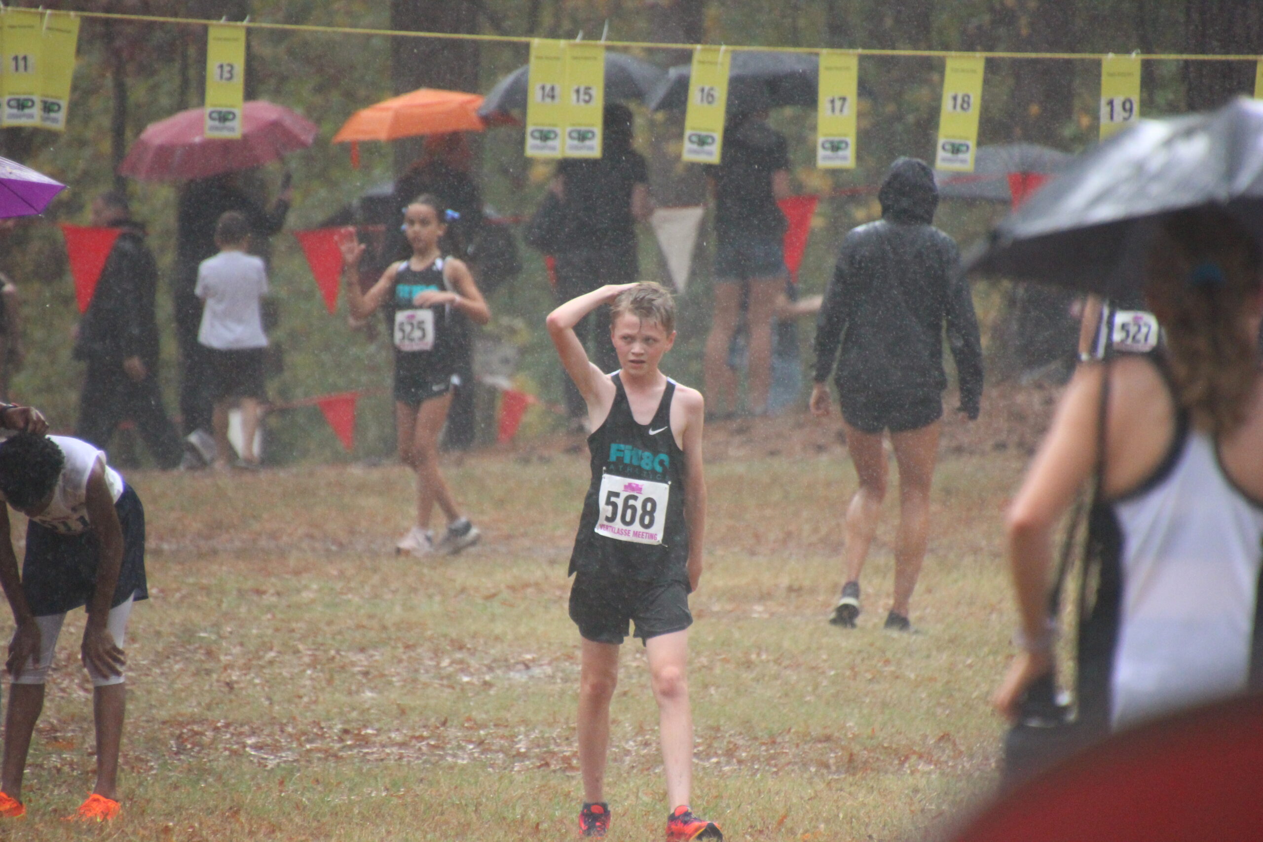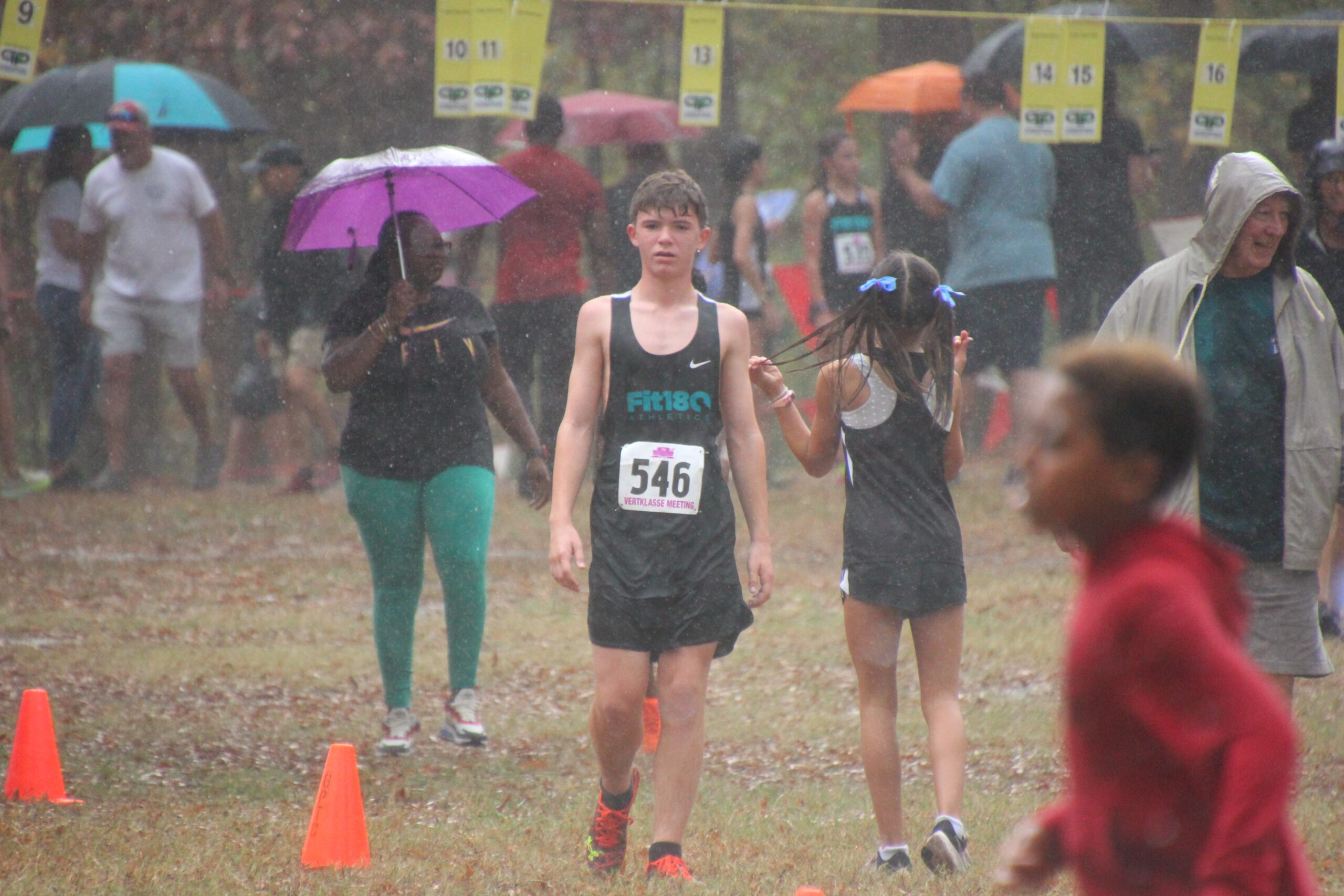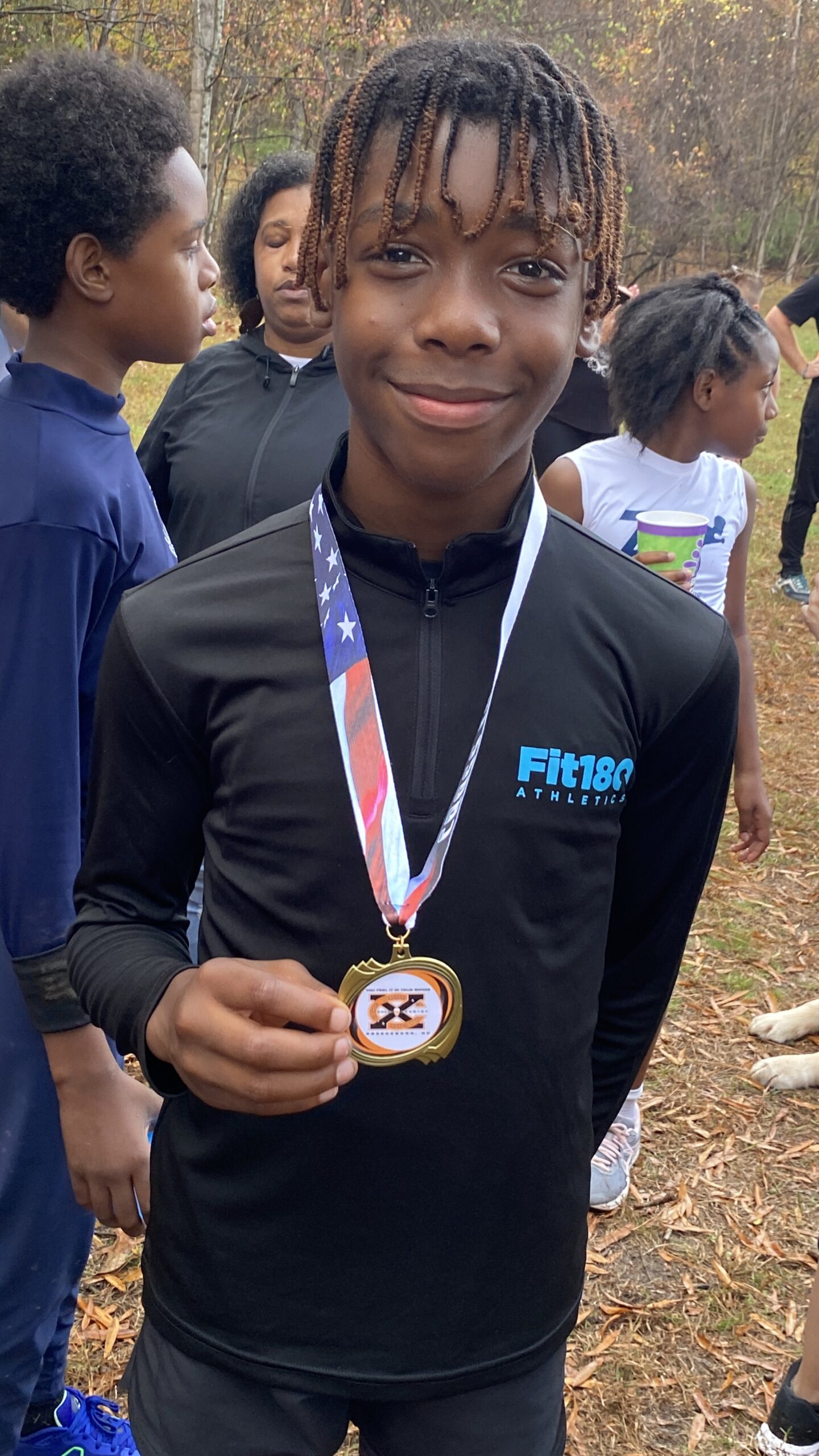 What a strong showing we had out there today!  Fit180 placed 18 of our runners in top ten medal winning spots!!   That was a true Cross Country course with plenty of hills, roots, and added bonus of mud and rain for our 11-12 year old boys and girls!  Missing shoes, pouring rain, lots of mud and tough working kids!  It was so fun for us to coach, support and cheer on this competitive group of runners!