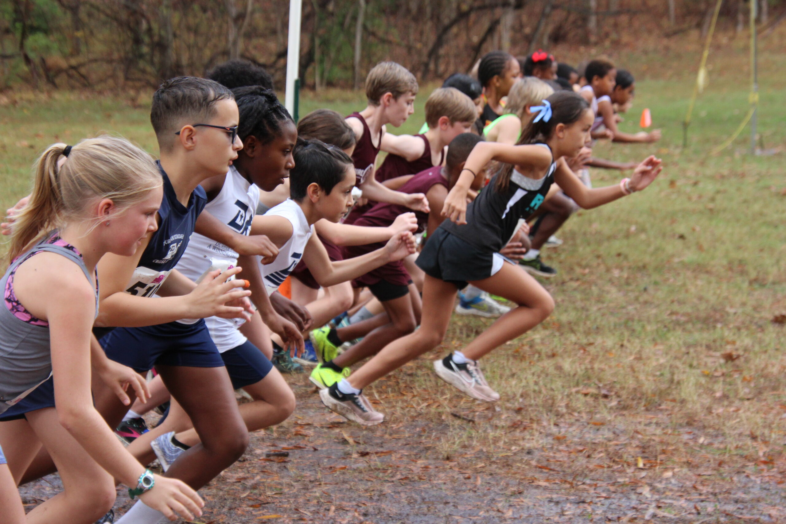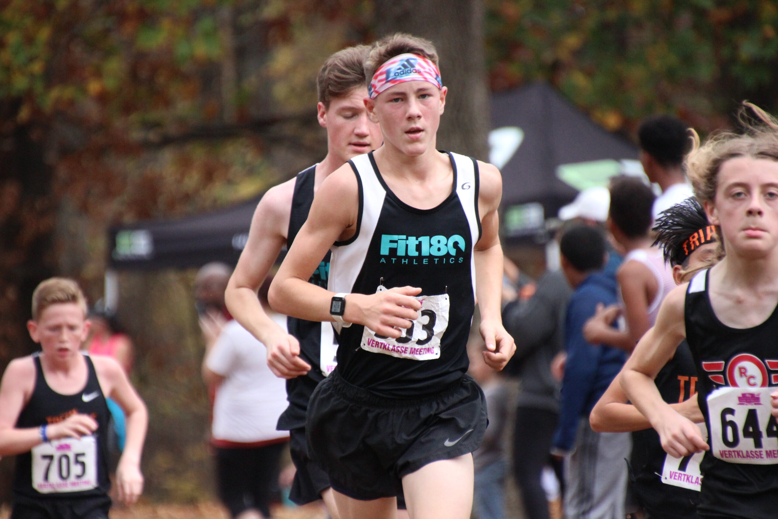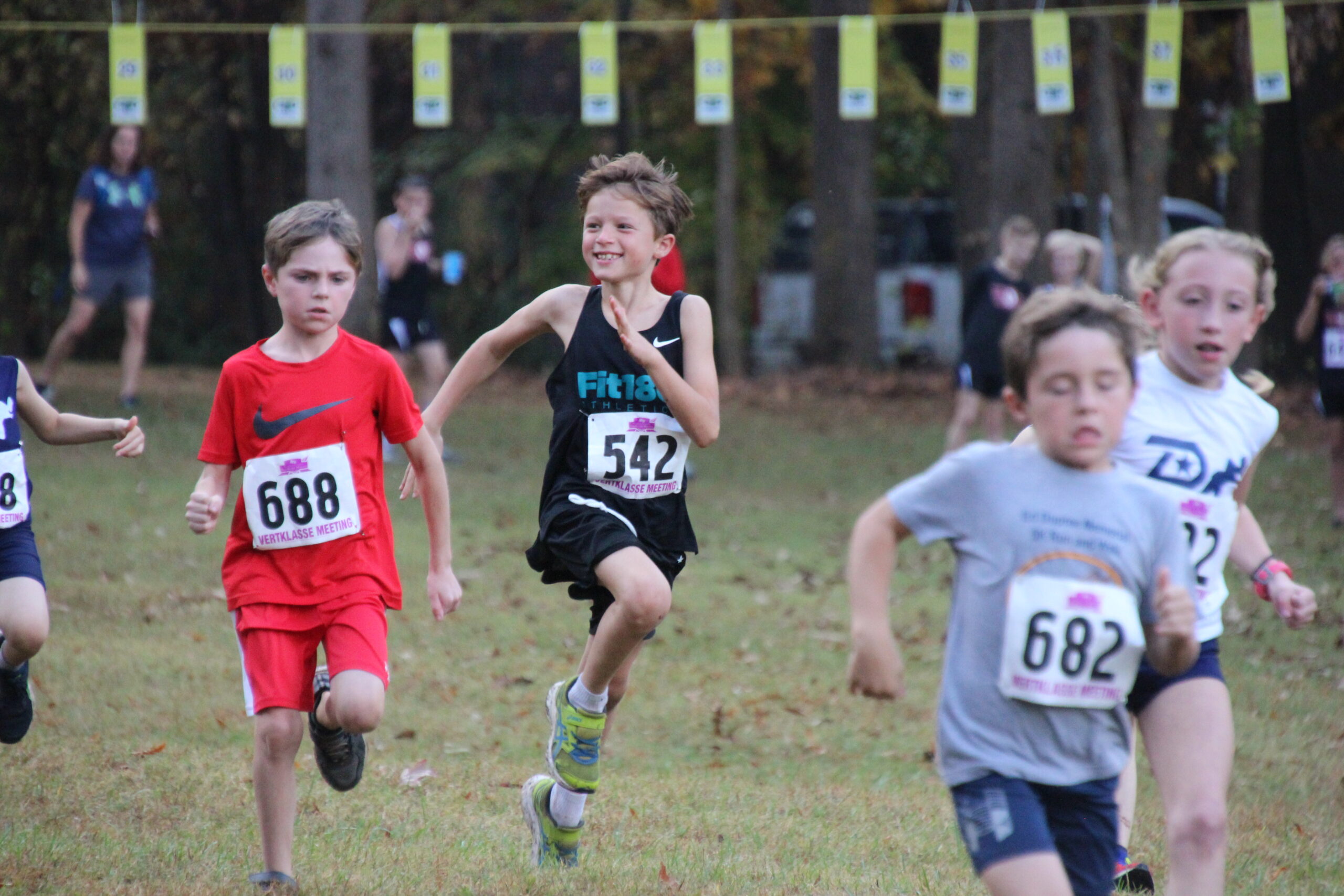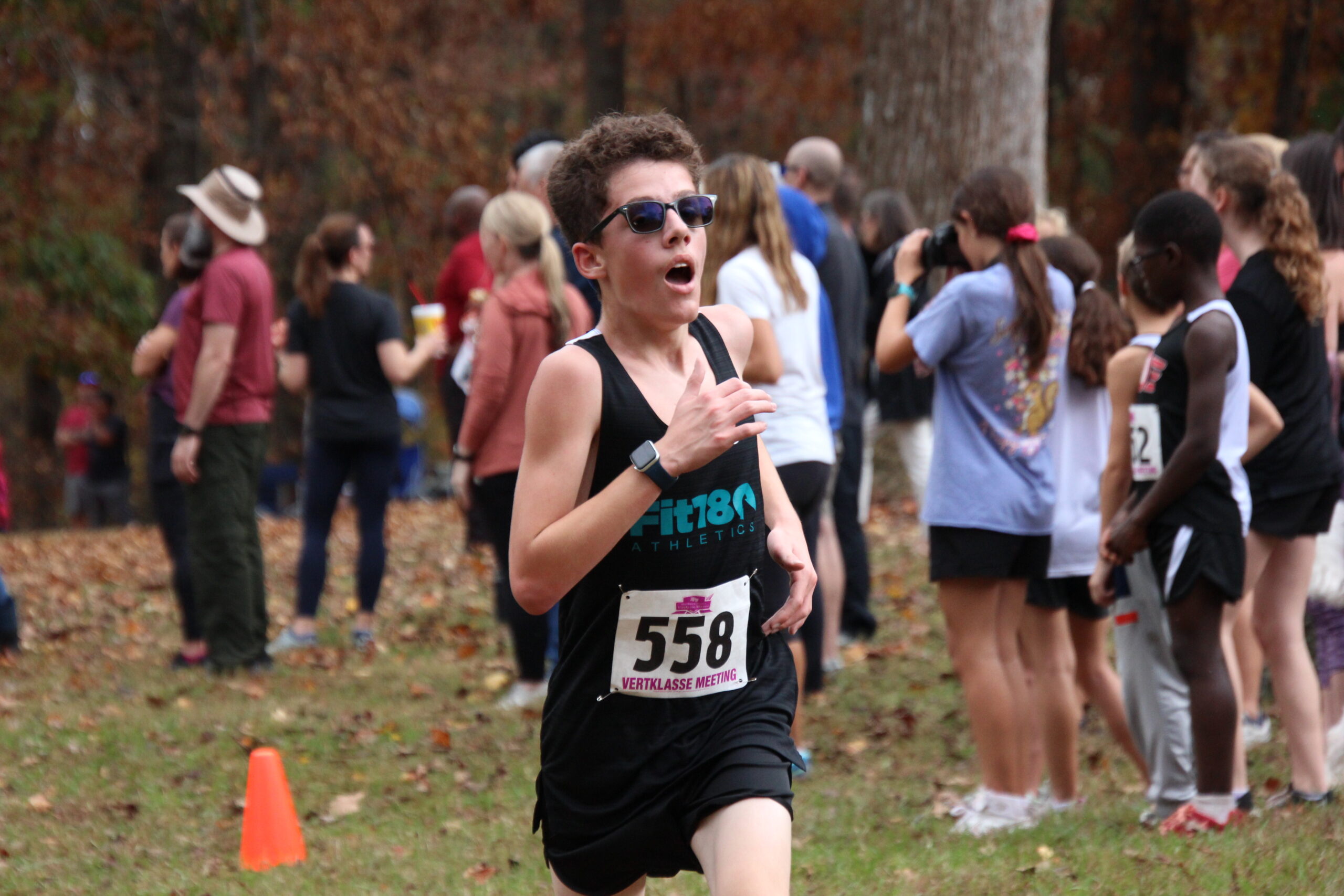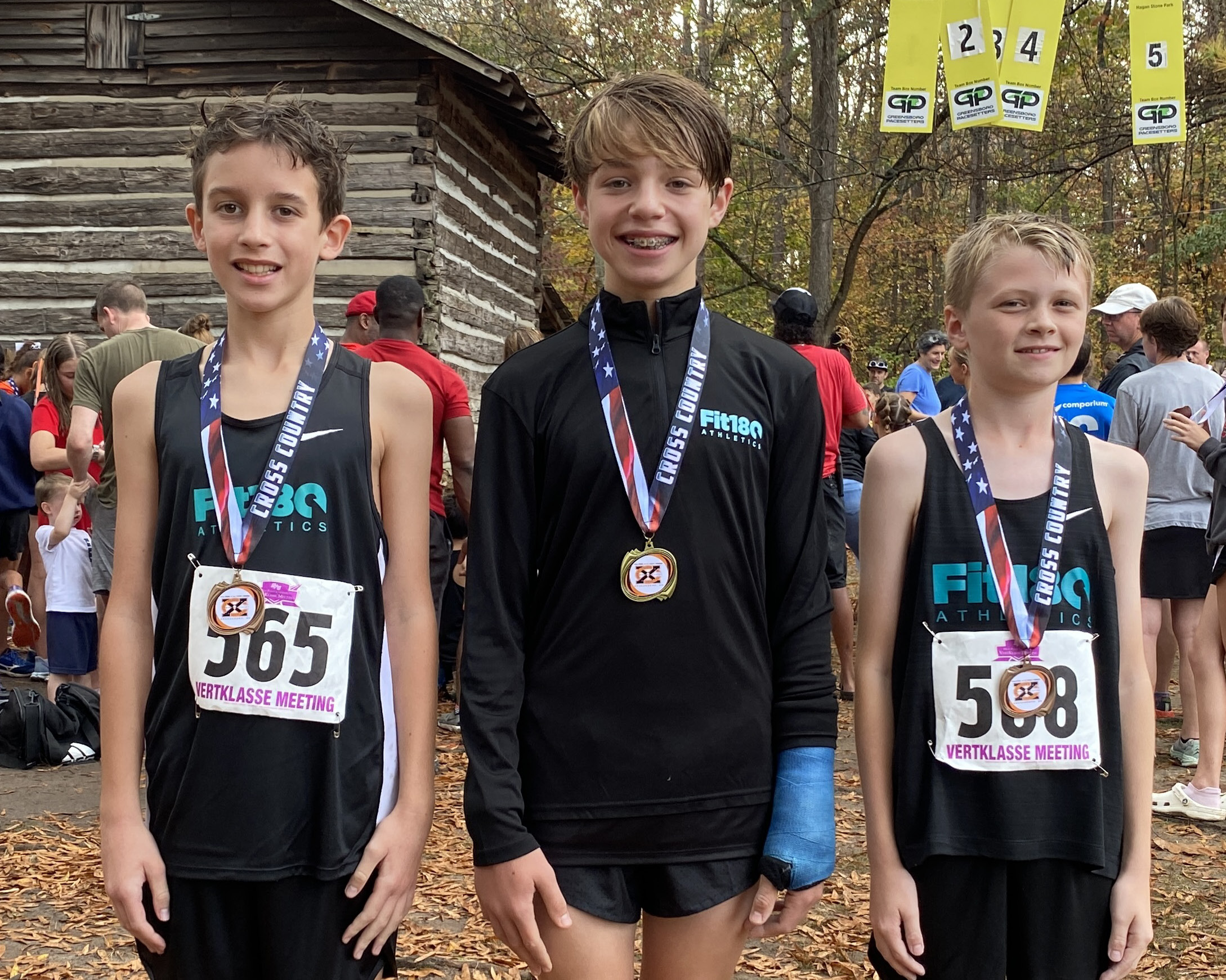 What a strong showing we had out there today!  Fit180 placed 18 of our runners in top ten medal winning spots!!   That was a true Cross Country course with plenty of hills, roots, and added bonus of mud and rain for our 11-12 year old boys and girls!  Missing shoes, pouring rain, lots of mud and tough working kids!  It was so fun for us to coach, support and cheer on this competitive group of runners!